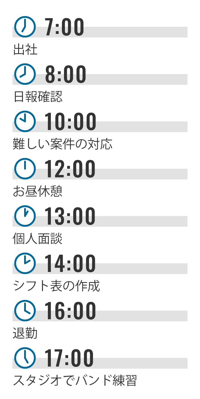 バンド業界未経験でしたが、やる気があれば責任ある仕事も任せてもらえます。私は管理職としてチームのメンバーをまとめています。日報や面談から、メンバーのスキルや悩みを把握し、人員配置やフォローアップをしています。