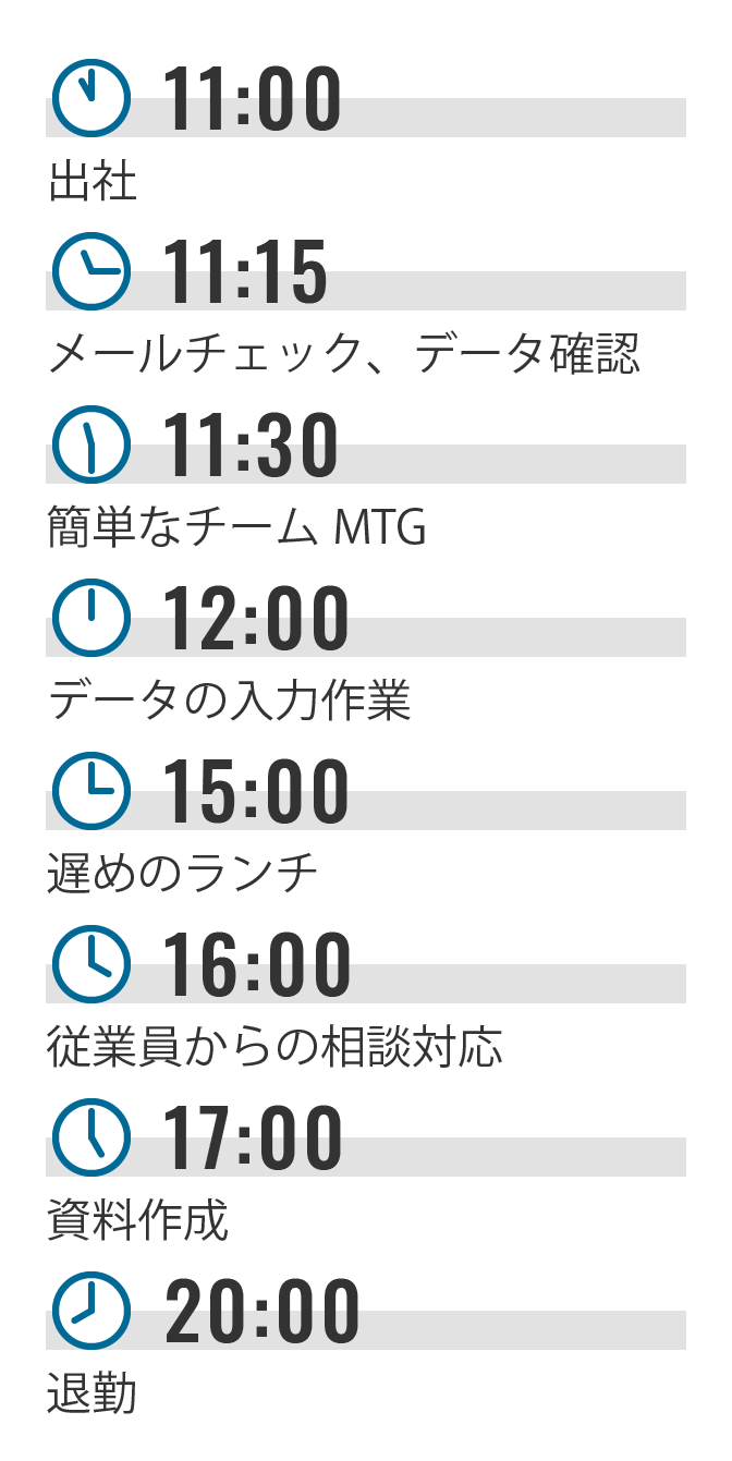 | 勤務時間 | <希望に合わせてシフトを作成します!> 8:30~19:00の間で自由にシフトを作成(実働8時間勤務) ※8時間未満の時短勤務をご希望の場合はご相談ください ※1ヶ月単位の変形労働時間制 ※週30時間~ ★残業はありません。ワークライフバランスを大切にできます。 ★残業希望者は残業して稼ぐことも可能です。 |